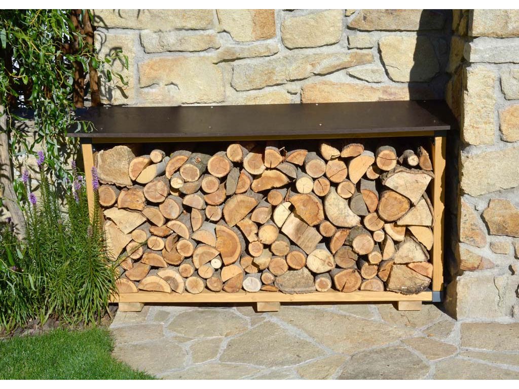 - u dřevníků nad 2 m šířky přikládáme vnitřní svislou vzpěru zabraňující prověšení horní hrany. Tvoří ji fošna délky vnitřní výšky dřevníku a dva úhelníky, kterými ji zevnitř přivrutujte na střed dřevníku - viz poslední foto u produktu