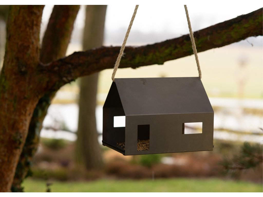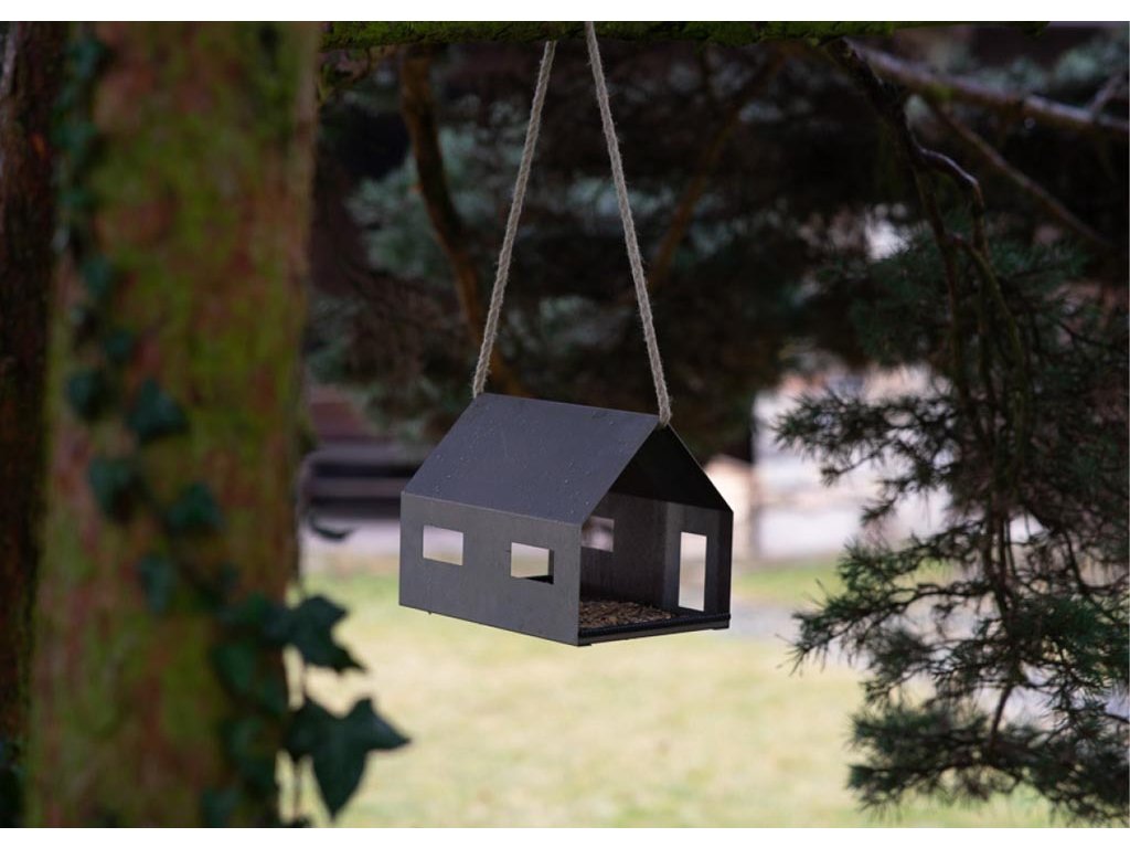 Součástí balení je odolné závěsné lano, které umožňuje snadné zavěšení krmítka na větev stromu, pergolu či háček pod přístřeškem. Pro stabilní a samostatně stojící řešení lze krmítko připevnit na volitelný kovový stojan, který se zapíchne do země. Tak vzniká designový solitér, který působí jako malý dům uprostřed přírody – funkční i estetický zároveň.