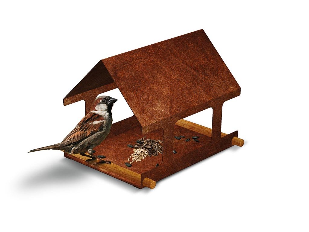 Každé ptačí krmítko z cortenu je tak originál, který krásně stárne spolu se zahradou.