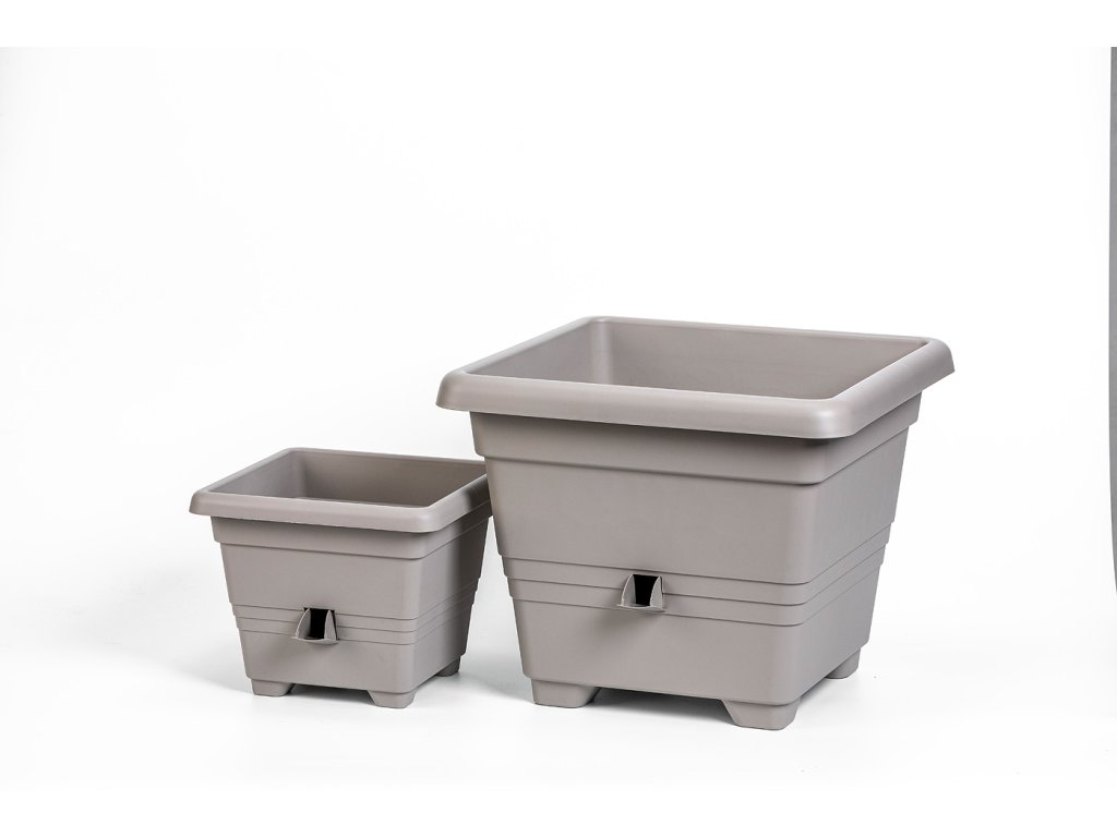 Praktický samozavlažovací květináč se čtvercovým půdorysem a hladkým povrchem je navržen pro pohodlné a efektivní pěstování rostlin. Výklopný otvor zajišťuje optimální přístup vzduchu ke kořenům a zároveň slouží jako plnicí otvor pro zalévání i přepad vody, který chrání rostliny před přelitím.