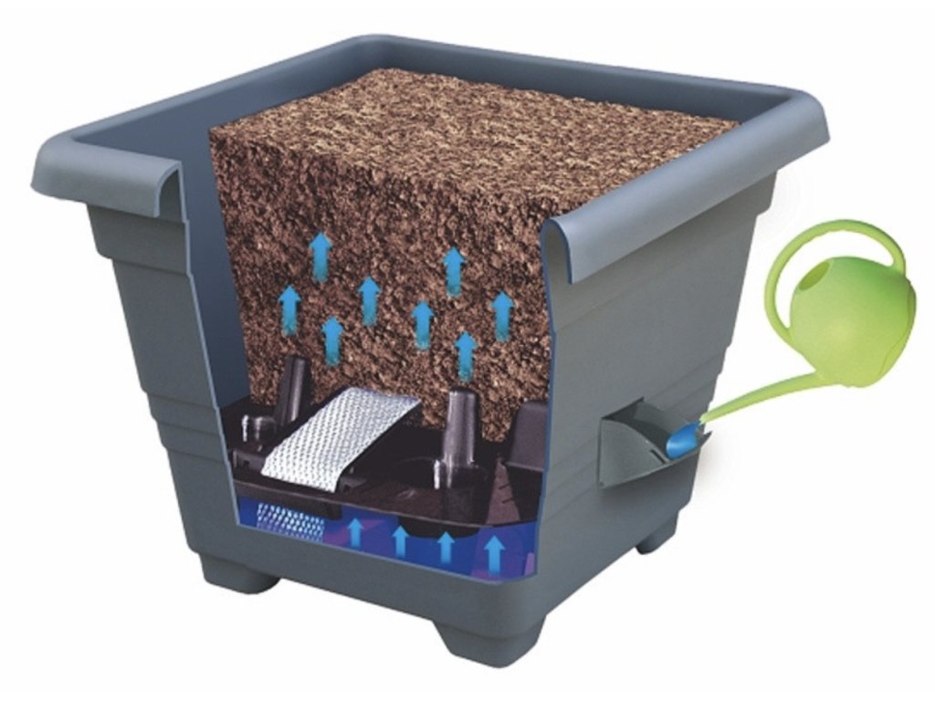 Samozavlažovací květináč čtvercového tvaru nabízí jednoduchý design, praktické provedení a snadnou péči o rostliny. Je dostupný ve třech velikostech a díky chytrému zavlažování podporuje zdravý růst zeleniny i letniček.