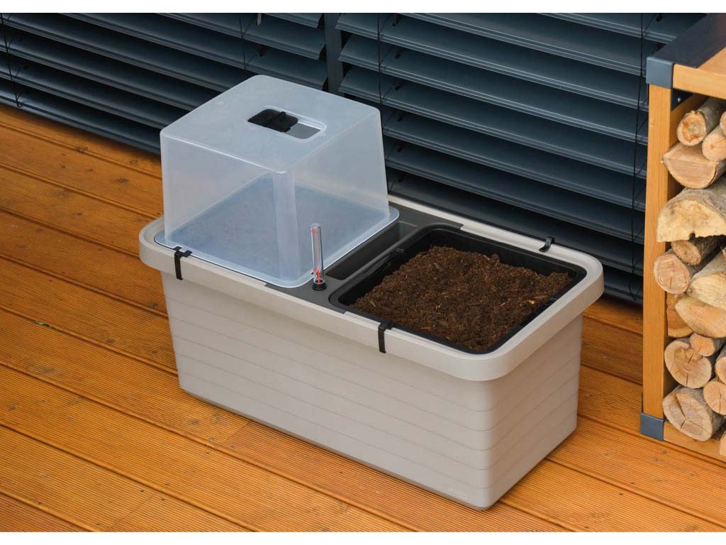 Manipulace s truhlíkem Berberis je maximálně komfortní díky integrovaným kolečkům, praktickým úchytům na nádobách a otvorům pro pevné uchycení opory rostlin. Samozavlažovací systém s velkým zásobníkem vody, hladinoměrem, plnicím otvorem a přepadem zajišťuje rovnoměrnou zálivku bez rizika přelití. Truhlík je ideální pro pěstování zeleniny, květin, bylinek i drobných keřů. Pěstební poklop Berberis můžete koupit zde.