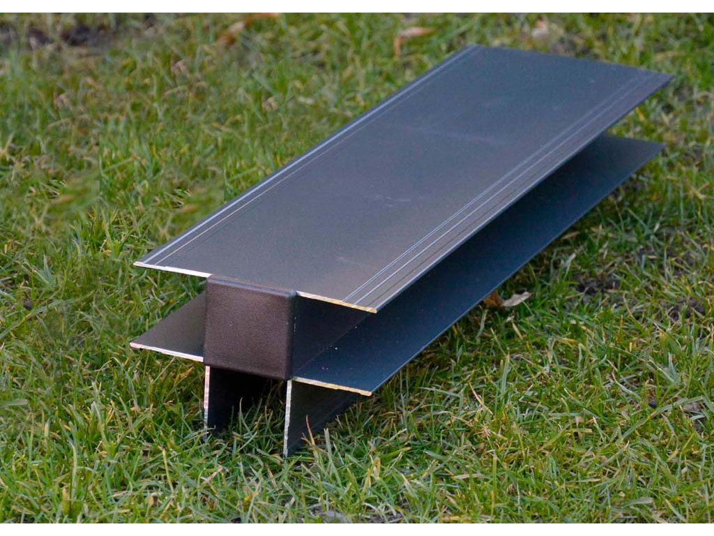 T-spoj je vzhledově i rozměrově shodný s našimi rohy (vnitřními i vnějšími). Fošny o tloušťce 4 cm, stejně jako u rohů, zasunete do profilu T-spoje ze všech tří stran a upevníte přivrutováním přiloženými vruty do předvrtaných otvorů.