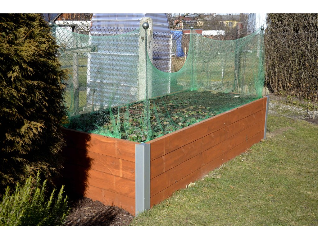 Tyč snadno připevníte do všech rohů záhonu. Poté přes tyče přehoďte síť s libovolnou velikostí oka v závislosti na tom, před kým chcete chcete úrodu chránit - ptáky, hmyzem nebo jen domácími mazlíčky.