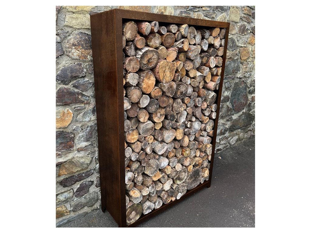 Použitá COR-TEN® ocel je materiál známý svou dlouhou životností a minimálními nároky na údržbu. V průběhu času se na jejím povrchu vytváří charakteristická rezavá patina, která chrání ocel před další korozí a dodává dřevníku jedinečný, přirozený vzhled. Každý kus je originál, jehož estetická hodnota s věkem roste.