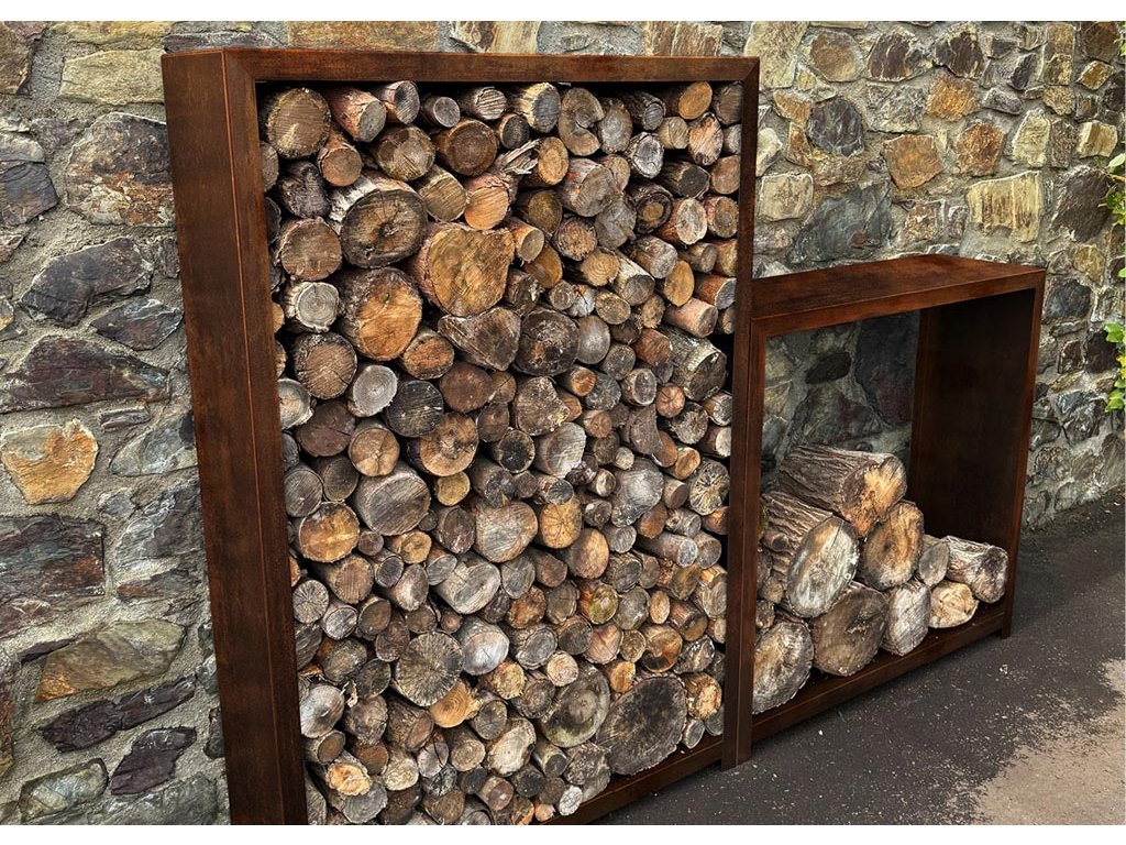 Dřevník z cortenu může fungovat jako samostatný solitérní prvek v zahradě, ale také jako součást větší architektonické kompozice. Skvěle ladí s dalšími cortenovými prvky, jako jsou záhony, truhlíky, ohniště nebo obrubníky, a podporuje jednotný styl moderní zahradní architektury. Jako skvělý doplněk zahrady se hodí i cortenová krmítka nebo dekorace.