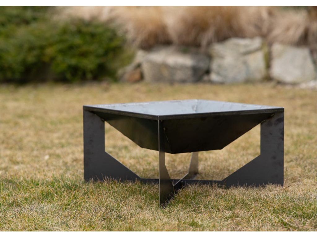 Konstrukci ohniště tvoří čtyři přesně svařené bočnice s vyztuženým horním lemem a masivní ocelové dno, které zajišťují dlouhou životnost a stabilitu. Nohy z plného plechu poskytují pevný postoj na různých typech povrchů a zároveň pomáhají omezit přenos tepla směrem dolů. Celkové provedení podtrhuje čistý, geometrický a nadčasový design.